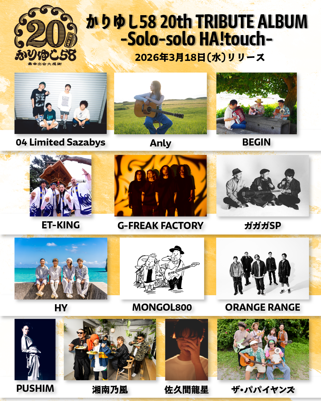 「かりゆし58 20th TRIBUTE ALBUM -Solo-solo HA!touch- TOUR」ゲスト解禁!